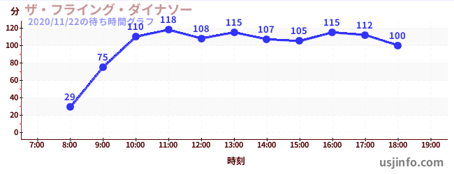 • ザ・フライング・ダイナソー$B$N(B2020年11月22日の待ち時間