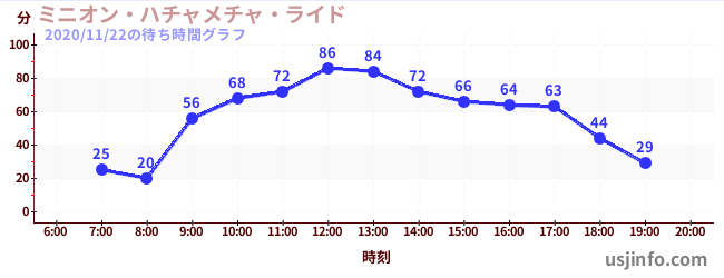 • ミニオン・ハチャメチャ・ライド$B$N(B2020年11月22日の待ち時間