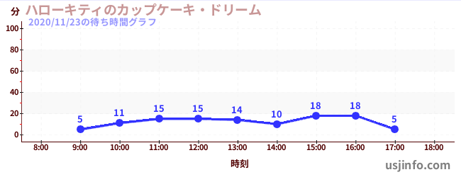 • ハローキティのカップケーキ・ドリーム$B$N(B2020年11月23日の待ち時間