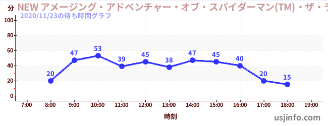 • NEW アメージング・アドベンチャー・オブ・スパイダーマン(TM)・ザ・ライド 4K3D$B$N(B2020年11月23日の待ち時間