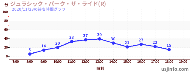 • ジュラシック・パーク・ザ・ライド(R)$B$N(B2020年11月23日の待ち時間