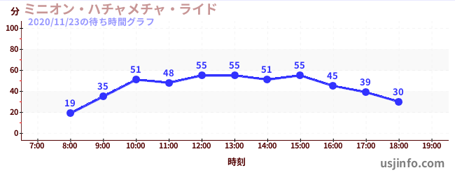• ミニオン・ハチャメチャ・ライド$B$N(B2020年11月23日の待ち時間
