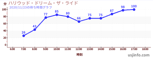 • ハリウッド・ドリーム・ザ・ライド$B$N(B2020年11月23日の待ち時間