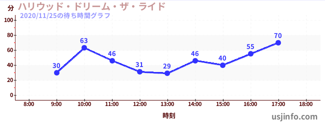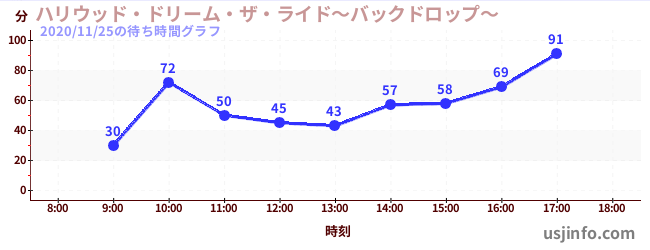 • ハリウッド・ドリーム・ザ・ライド〜バックドロップ〜$B$N(B2020年11月25日の待ち時間