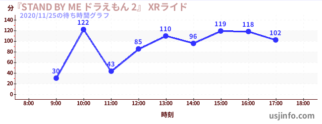 • 『STAND BY ME ドラえもん 2』 XRライド$B$N(B2020年11月25日の待ち時間