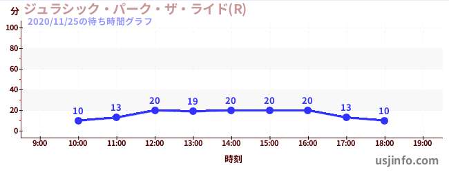 • ジュラシック・パーク・ザ・ライド(R)$B$N(B2020年11月25日の待ち時間