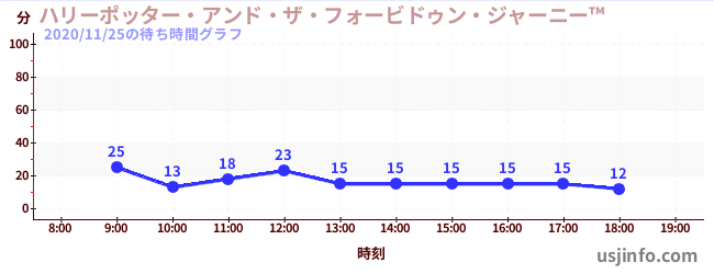 • ハリーポッター・アンド・ザ・フォービドゥン・ジャーニー™$B$N(B2020年11月25日の待ち時間