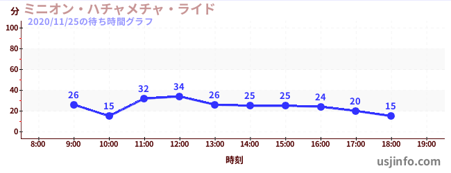 • ミニオン・ハチャメチャ・ライド$B$N(B2020年11月25日の待ち時間