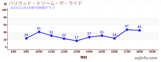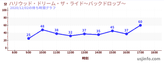 • ハリウッド・ドリーム・ザ・ライド〜バックドロップ〜$B$N(B2020年12月02日の待ち時間