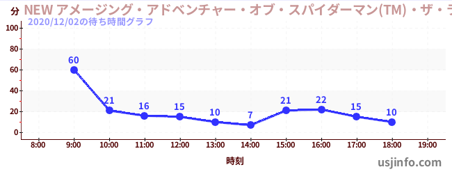 • NEW アメージング・アドベンチャー・オブ・スパイダーマン(TM)・ザ・ライド 4K3D$B$N(B2020年12月02日の待ち時間