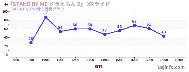 • 『STAND BY ME ドラえもん 2』 XRライド$B$N(B2020年12月02日の待ち時間