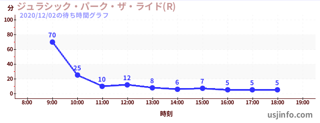 • ジュラシック・パーク・ザ・ライド(R)$B$N(B2020年12月02日の待ち時間