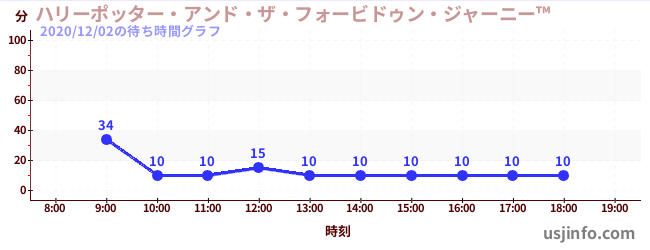 • ハリーポッター・アンド・ザ・フォービドゥン・ジャーニー™$B$N(B2020年12月02日の待ち時間
