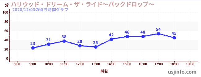 • ハリウッド・ドリーム・ザ・ライド〜バックドロップ〜$B$N(B2020年12月03日の待ち時間