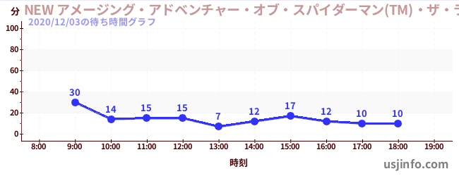 • NEW アメージング・アドベンチャー・オブ・スパイダーマン(TM)・ザ・ライド 4K3D$B$N(B2020年12月03日の待ち時間