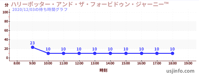 • ハリーポッター・アンド・ザ・フォービドゥン・ジャーニー™$B$N(B2020年12月03日の待ち時間