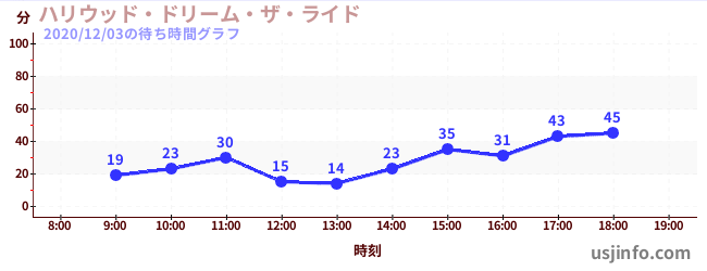 • ハリウッド・ドリーム・ザ・ライド$B$N(B2020年12月03日の待ち時間