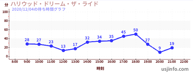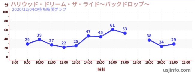 • ハリウッド・ドリーム・ザ・ライド〜バックドロップ〜$B$N(B2020年12月04日の待ち時間