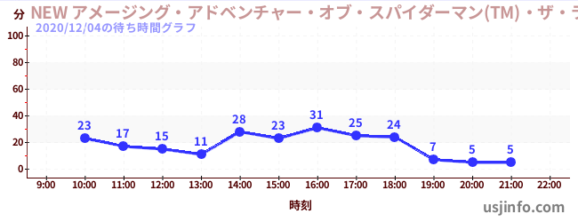 • NEW アメージング・アドベンチャー・オブ・スパイダーマン(TM)・ザ・ライド 4K3D$B$N(B2020年12月04日の待ち時間