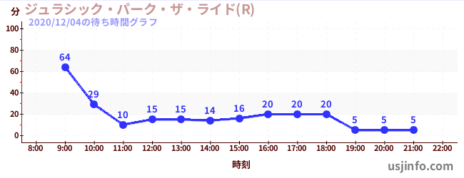 • ジュラシック・パーク・ザ・ライド(R)$B$N(B2020年12月04日の待ち時間