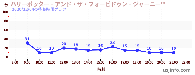 • ハリーポッター・アンド・ザ・フォービドゥン・ジャーニー™$B$N(B2020年12月04日の待ち時間