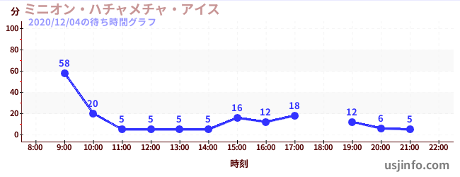 • ミニオン・ハチャメチャ・アイス$B$N(B2020年12月04日の待ち時間