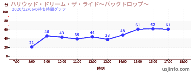 • ハリウッド・ドリーム・ザ・ライド〜バックドロップ〜$B$N(B2020年12月06日の待ち時間