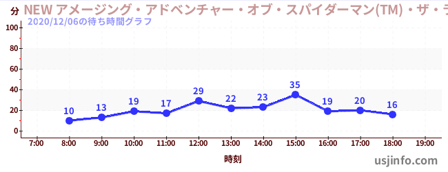 • NEW アメージング・アドベンチャー・オブ・スパイダーマン(TM)・ザ・ライド 4K3D$B$N(B2020年12月06日の待ち時間
