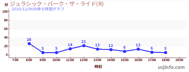 • ジュラシック・パーク・ザ・ライド(R)$B$N(B2020年12月06日の待ち時間