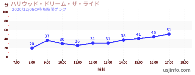 • ハリウッド・ドリーム・ザ・ライド$B$N(B2020年12月06日の待ち時間