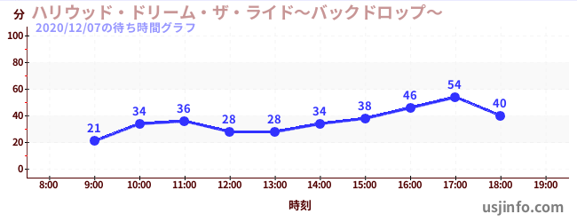 • ハリウッド・ドリーム・ザ・ライド〜バックドロップ〜$B$N(B2020年12月07日の待ち時間