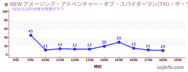 • NEW アメージング・アドベンチャー・オブ・スパイダーマン(TM)・ザ・ライド 4K3D$B$N(B2020年12月07日の待ち時間