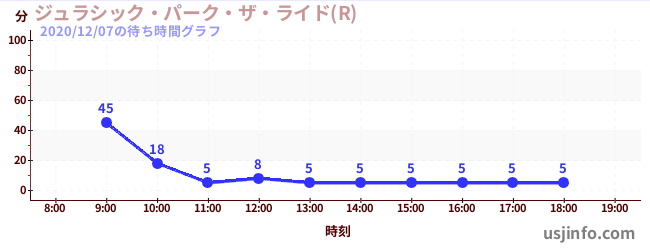• ジュラシック・パーク・ザ・ライド(R)$B$N(B2020年12月07日の待ち時間