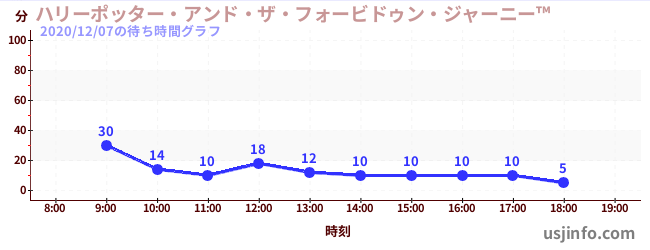 • ハリーポッター・アンド・ザ・フォービドゥン・ジャーニー™$B$N(B2020年12月07日の待ち時間