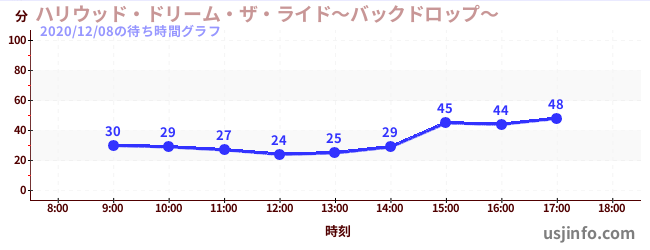 • ハリウッド・ドリーム・ザ・ライド〜バックドロップ〜$B$N(B2020年12月08日の待ち時間