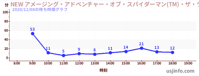 • NEW アメージング・アドベンチャー・オブ・スパイダーマン(TM)・ザ・ライド 4K3D$B$N(B2020年12月08日の待ち時間