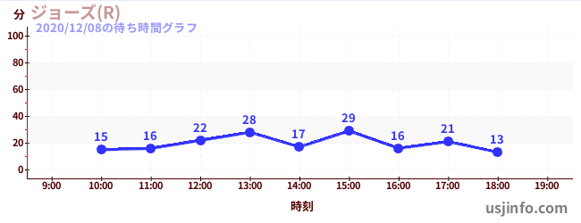 • ジョーズ(R)$B$N(B2020年12月08日の待ち時間