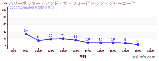 • ハリーポッター・アンド・ザ・フォービドゥン・ジャーニー™$B$N(B2020年12月08日の待ち時間