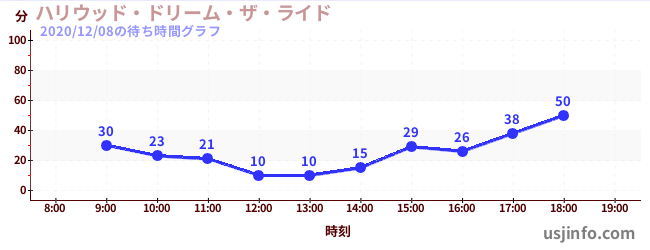 • ハリウッド・ドリーム・ザ・ライド$B$N(B2020年12月08日の待ち時間