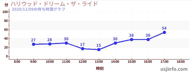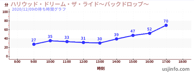 • ハリウッド・ドリーム・ザ・ライド〜バックドロップ〜$B$N(B2020年12月09日の待ち時間