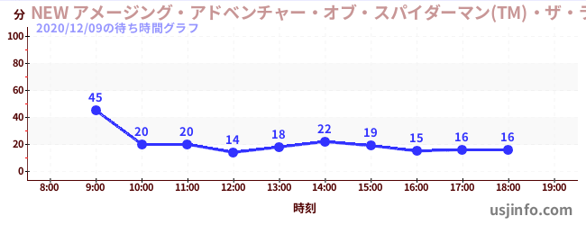 • NEW アメージング・アドベンチャー・オブ・スパイダーマン(TM)・ザ・ライド 4K3D$B$N(B2020年12月09日の待ち時間