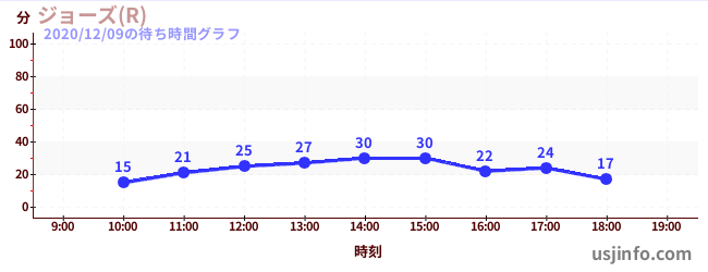 • ジョーズ(R)$B$N(B2020年12月09日の待ち時間