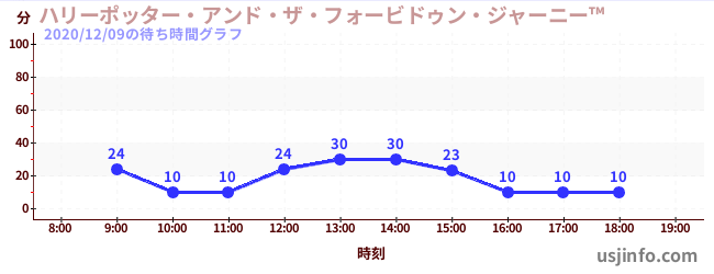 • ハリーポッター・アンド・ザ・フォービドゥン・ジャーニー™$B$N(B2020年12月09日の待ち時間