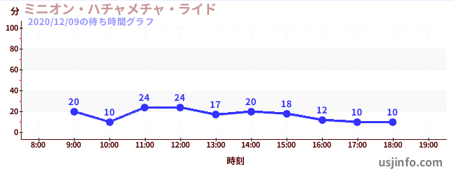 • ミニオン・ハチャメチャ・ライド$B$N(B2020年12月09日の待ち時間
