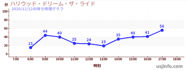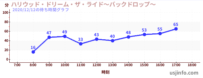 • ハリウッド・ドリーム・ザ・ライド〜バックドロップ〜$B$N(B2020年12月12日の待ち時間