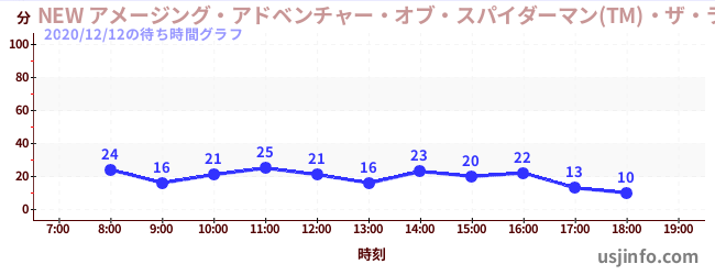 • NEW アメージング・アドベンチャー・オブ・スパイダーマン(TM)・ザ・ライド 4K3D$B$N(B2020年12月12日の待ち時間