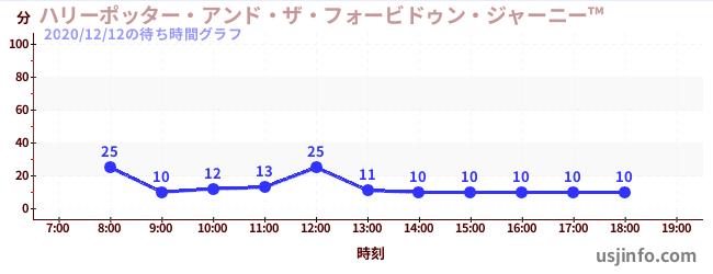 • ハリーポッター・アンド・ザ・フォービドゥン・ジャーニー™$B$N(B2020年12月12日の待ち時間