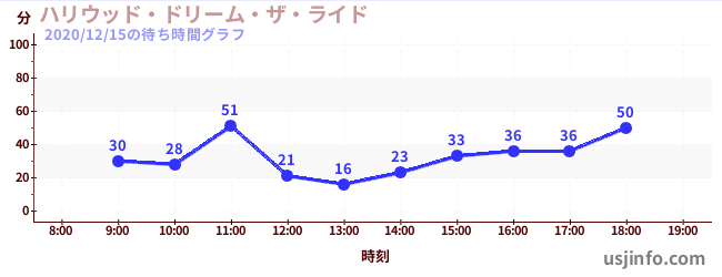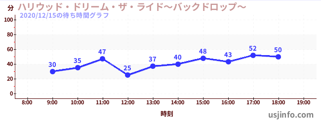 • ハリウッド・ドリーム・ザ・ライド〜バックドロップ〜$B$N(B2020年12月15日の待ち時間