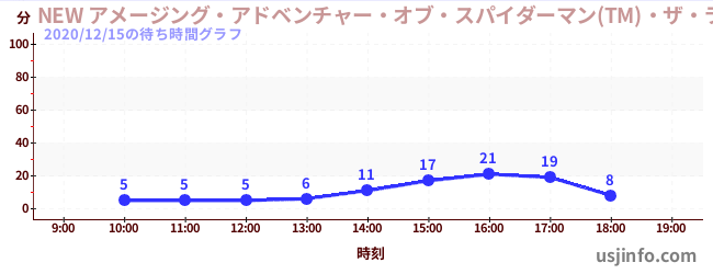 • NEW アメージング・アドベンチャー・オブ・スパイダーマン(TM)・ザ・ライド 4K3D$B$N(B2020年12月15日の待ち時間
