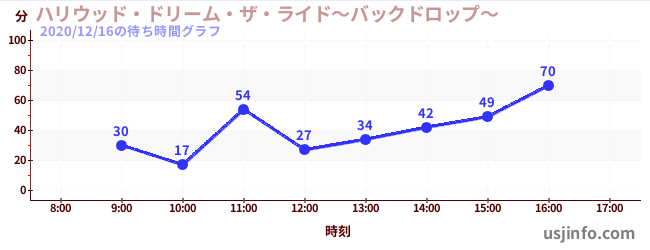 • ハリウッド・ドリーム・ザ・ライド〜バックドロップ〜$B$N(B2020年12月16日の待ち時間